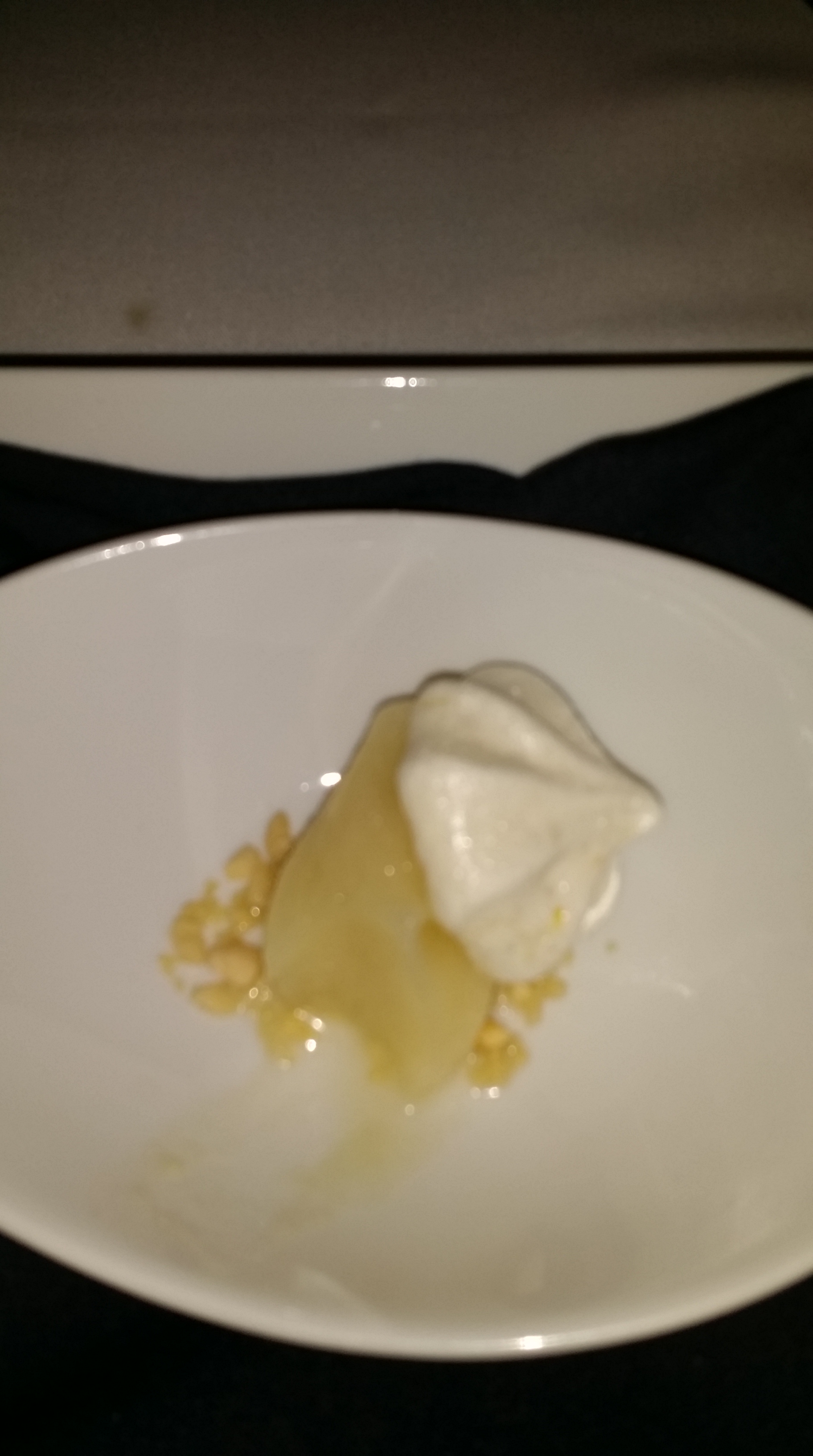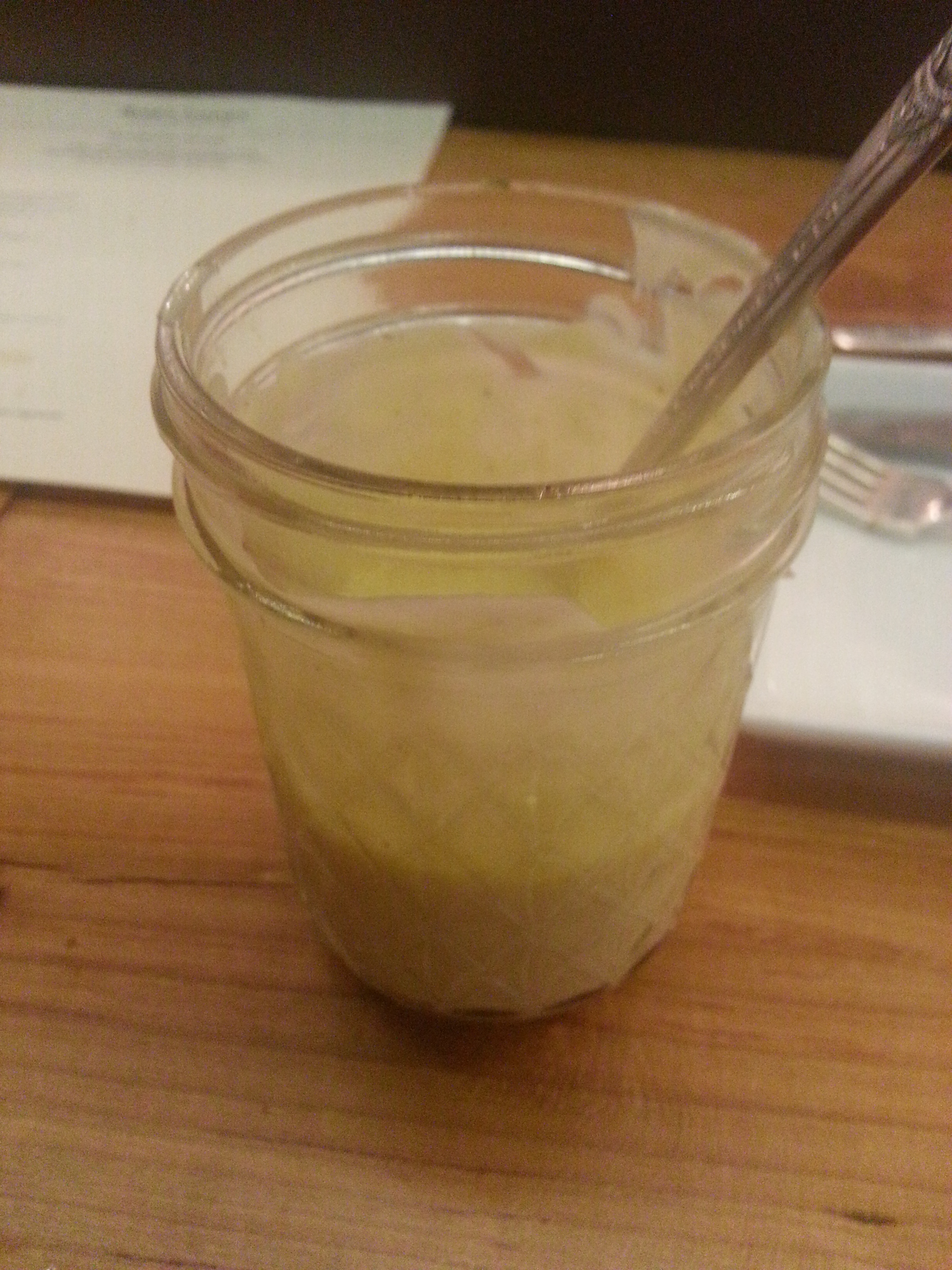 Before we even ordered, they brought us this to cleanse our palette, a delicate sorbet in a bed of short bread cookie crumbs (Chef O’Connell, you can cleanse my palette anytime 🙂 ):