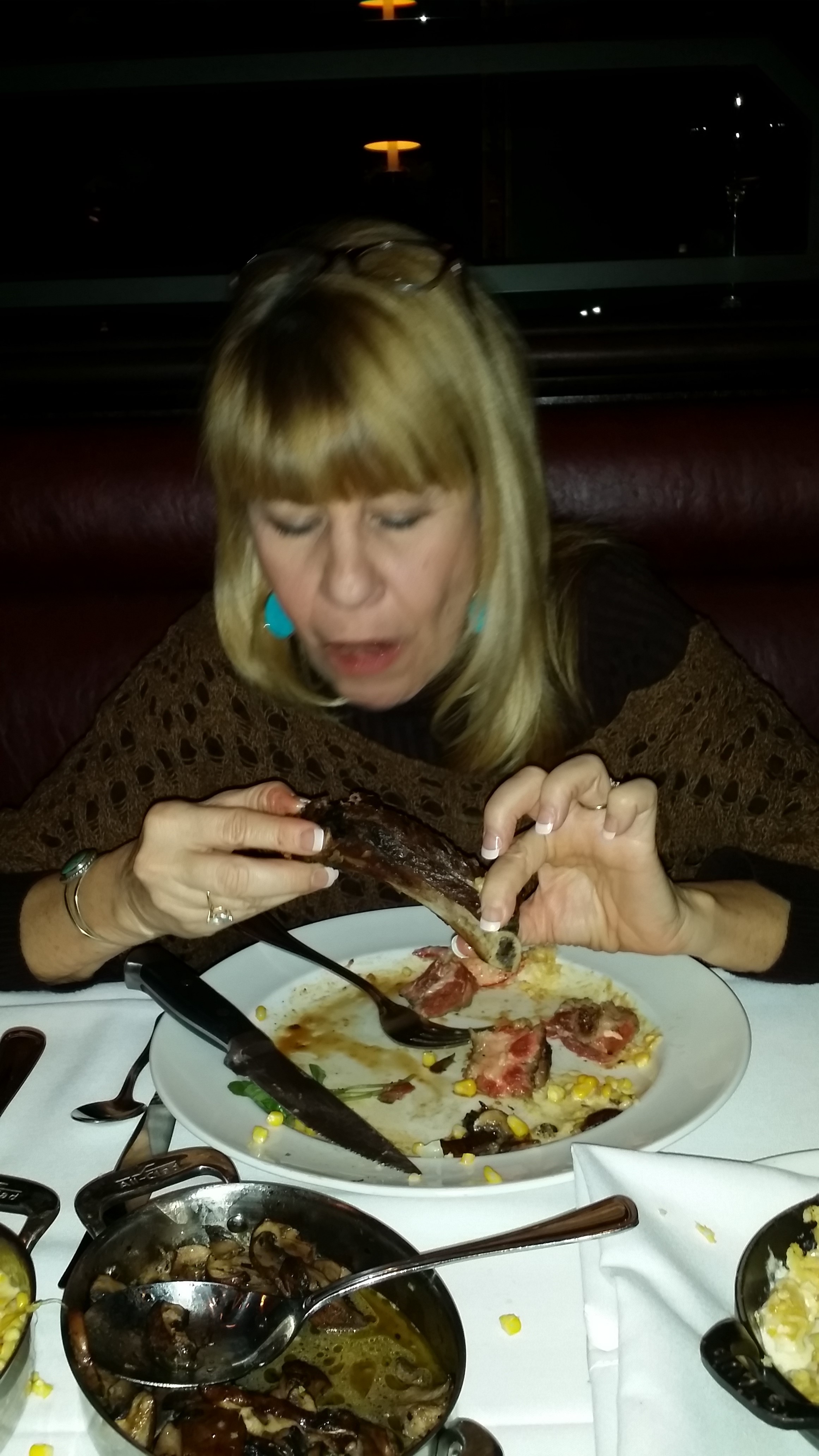 20131226_185847Well there. She asked me if I would think that it would be inappropriate for her to have her way with the bone in such a fine establishment, I simply responded that I would personally be offended if she didn’t. The picture speaks for itself. Sherry my friend, I am proud of you!
