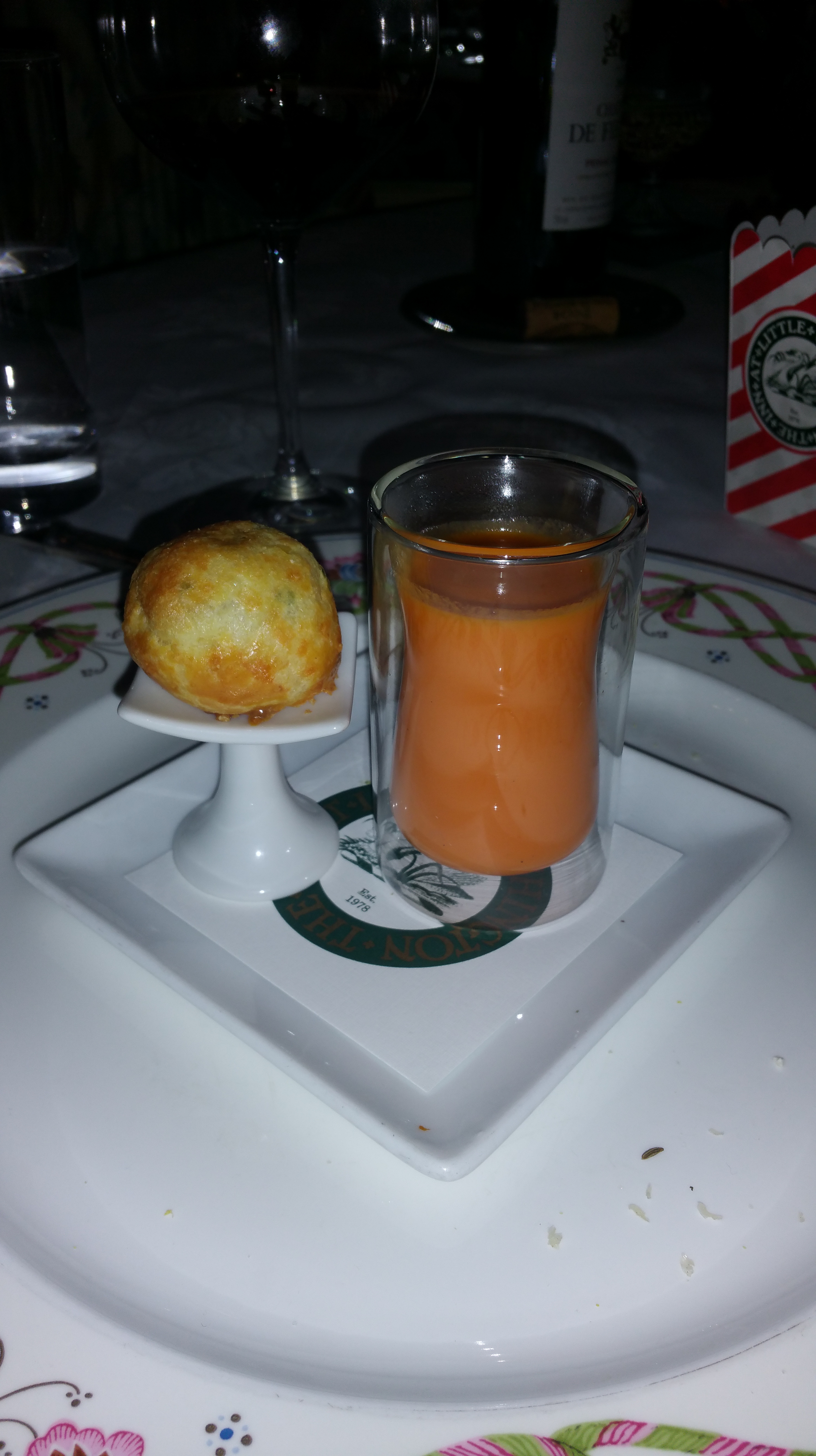 A velvety hot pepper soup with a sambucca cheese ball arrived next. It was delightful!