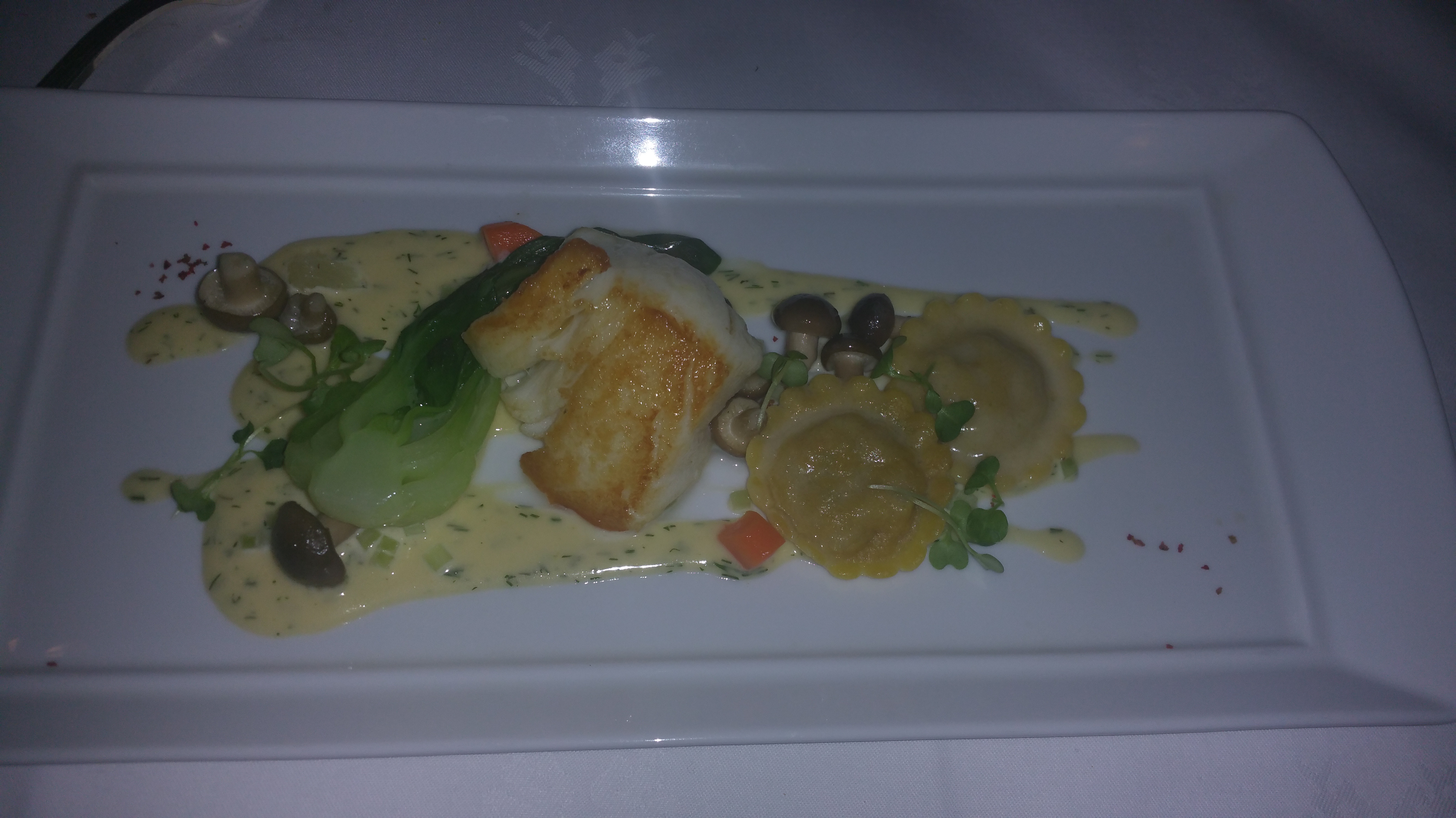 Next, came the filet of Antarctic sea bass with lemon vodka sauce served with Lilliputian shrimp and pork dumplings…….so fresh and prepared perfectly.