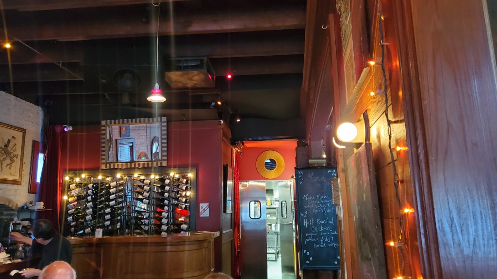 The same charming lady that accommodated us originally sat us down, her name is Elise. We had a table across from the bar. The décor was exquisite, tasteful, charming and made me feel like we were immediately transported to a Bistro in France.