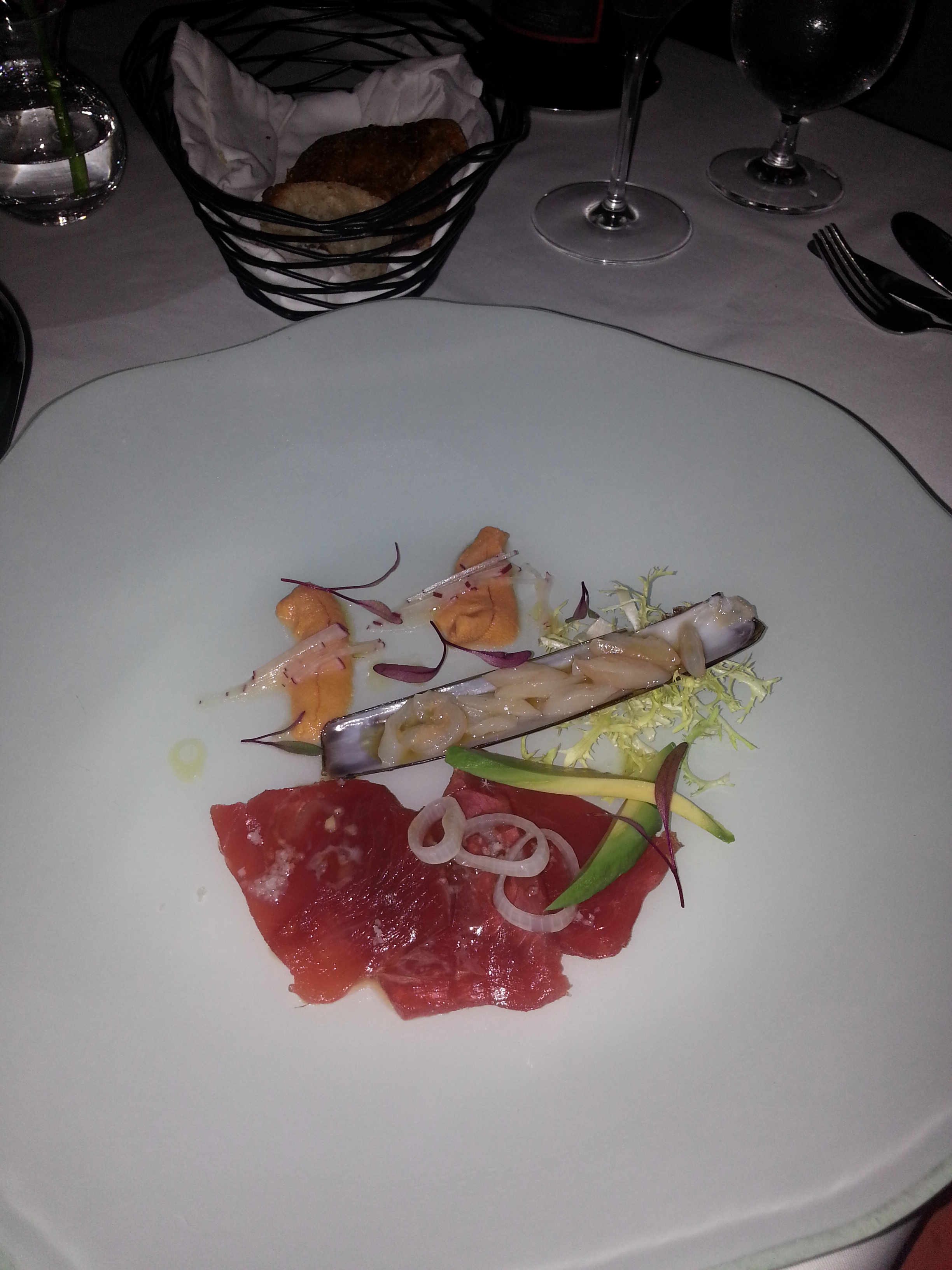 By now, we were moving into the part of the meal where the oohing and aahing are in full swing. We have been waiting with bated breath for several months to order the grilled foie gras. I cannot express how much in love I am with this! Aida ordered the pan seared foie gras “saltimbocca” with crispy parmigiano. I have to say that hers was even better than mine. Jessica had the big eye tuna with razor clams and sea urchin….fabulous!