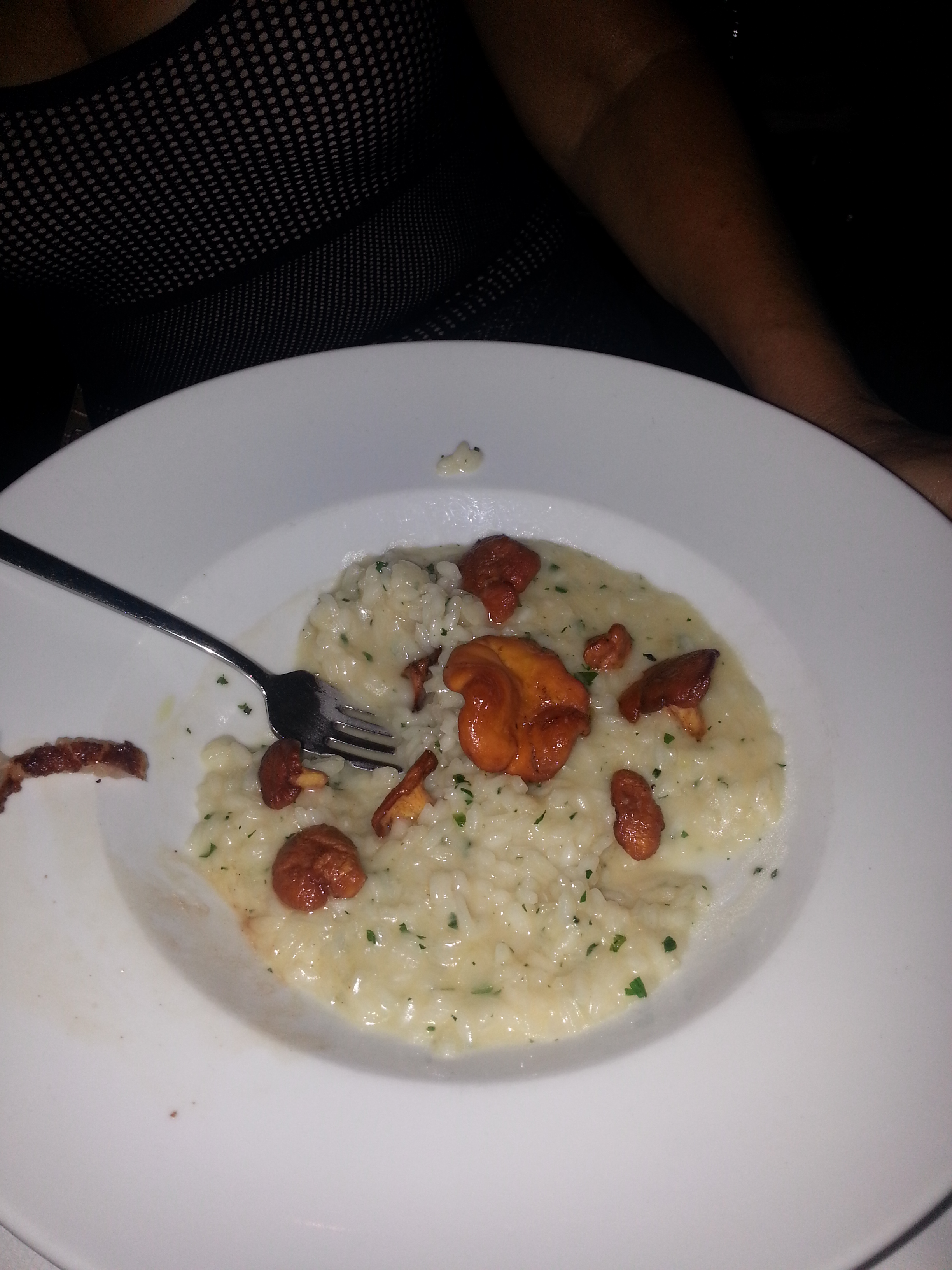 On to the primi course. I chose the risotto with chanterelles and parmigiano. I am pretty sure I saw God! (He looks a lot like Chef Marucci). We all agreed that this was a triumph! Jessica had the Yukon potato gnocchi with roasted tomatoes, peppers, arugula, zucchini and smoked ricotta…lovely. Aida ordered grilled duck with huckleberries, crispy polenta and chanterelles, That little corn cake really went nicely with the dish…delicious!